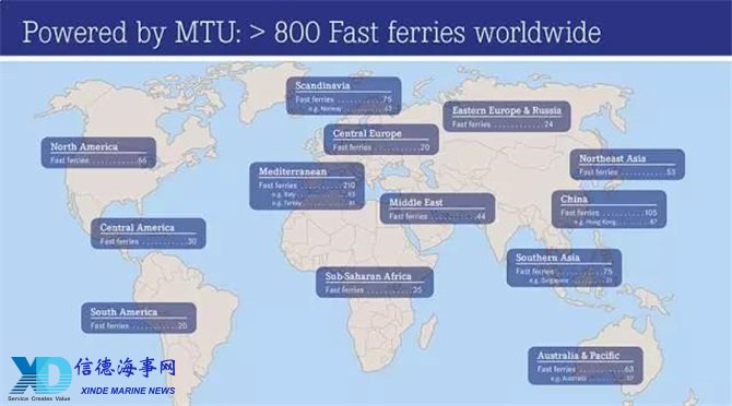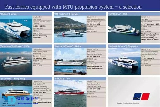 全球海域中,已经有超过800艘高速客船装载了 MTU 的引擎,数量超过其它任何品牌。