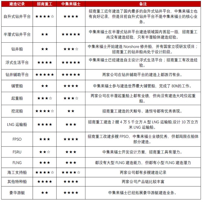 招商重工与中集来福士的建造记录比较