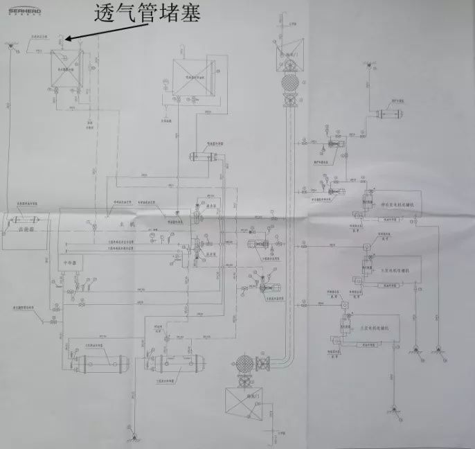 冷却水中溶解有少量空气,随着水温升高,空气的溶解度降低,部分空气从冷却水中析出,经透气管、膨胀水箱排出,如果透气管路不畅通,析出的空气就会积存在冷却水系统中,形成“气栓”导致离心式冷却水泵水压降低。