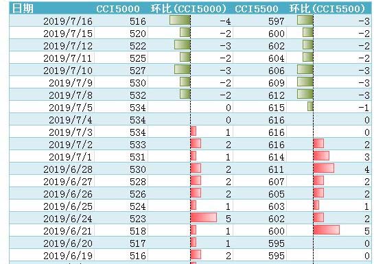 7月16日中国煤炭资源网最新一期的CCI动力煤价格显示,CCI5500动力煤价格报597元/吨,较上期价格继续回调3元/吨,较上月同期价格上调2元/吨或0.3%;CCI5000动力煤价格报516元/吨,较上期价格下调4元/吨,较上月同期价格水平上调3元/吨或0.6%。