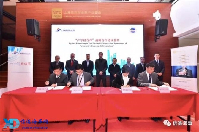 会上,青岛国际航运服务中心还与上海航运和金融产业基地、上海海事大学外语学院、南京理工大学经济管理学院就“产学研合作”签署战略合作协议。未来,各方将在青岛东亚航运中心建设如何进行产业集群发展、推进国际间合作交流等方面进行深入合作,推动面向一带一路航运领域的产学研融合。青岛国际航运服务中心副主任隋鵷、上海海事大学外语学院院长尚新、南京理工大学经济管理学院院长恢光平、上海航运和金融产业基地执行主席张兵华代表签约。