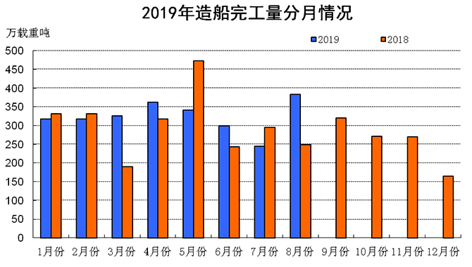 2019年1~8月份,我国造船完工量保持增长,新承接订单量和手持船舶订单量同比下降。重点监测企业工业总产值等主要经济指标继续增长。
