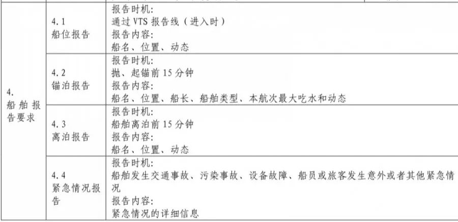注:配备了AIS并正确显示的船舶可以免于“船位报告”,拟通过东海大桥的船舶除外。