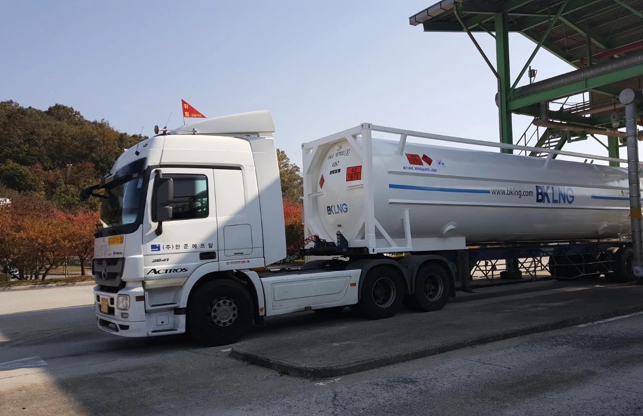 11月7日,罐箱LNG在韩国平泽港顺利充装。