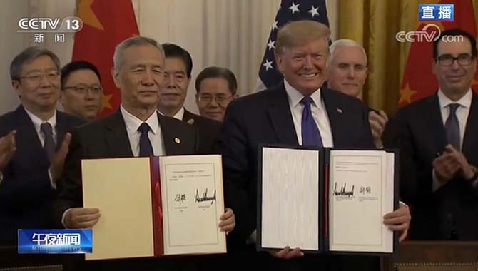 当地时间1月15日,经过中美两国经贸团队的共同努力,在平等和相互尊重的基础上,中美双方在美国首都华盛顿正式签署第一阶段经贸协议。协议文本包括序言、知识产权、技术转让、食品和农产品、金融服务、汇率和透明度、扩大贸易、双边评估和争端解决、最终条款九个章节。同时,双方达成一致,美方将履行分阶段取消对华产品加征关税的相关承诺,实现加征关税由升到降的转变。协议文本主要内容是什么?该如何解读?记者第一时间采访了权威专家。