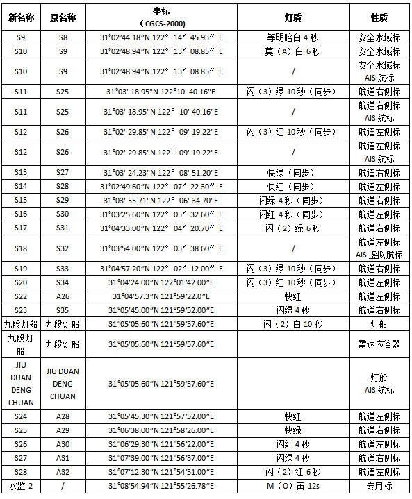 具体航标调整时间以上海海事局发布的航行警、通告为准。