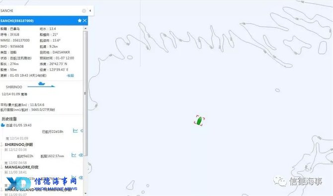 针对SANCHI轮的轨迹,通过船讯网的查询如图: