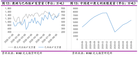 年初开始,受新冠肺炎疫情打击,全球贸易活动降至冰点,BDI也在历史低位徘徊。2季度以来,BDI受到其组分中铁矿石与煤炭适运船型运价BCI的大幅拉升而暴涨,这反映了国内经济快速回暖,随着复工复产加快,基建强势发力,带动铁矿石和煤炭等需求量大增,同期巴西到青岛的铁矿石海运费和澳大利亚到青岛的铁矿石海运费都出现了大幅上涨;除此之外,美国、澳洲发往国内的煤炭数量也有所增加。进入3季度,国内经济恢复速度开始放缓,叠加海外疫情二次复发,BDI迅速回落,近一个月又有所回升。