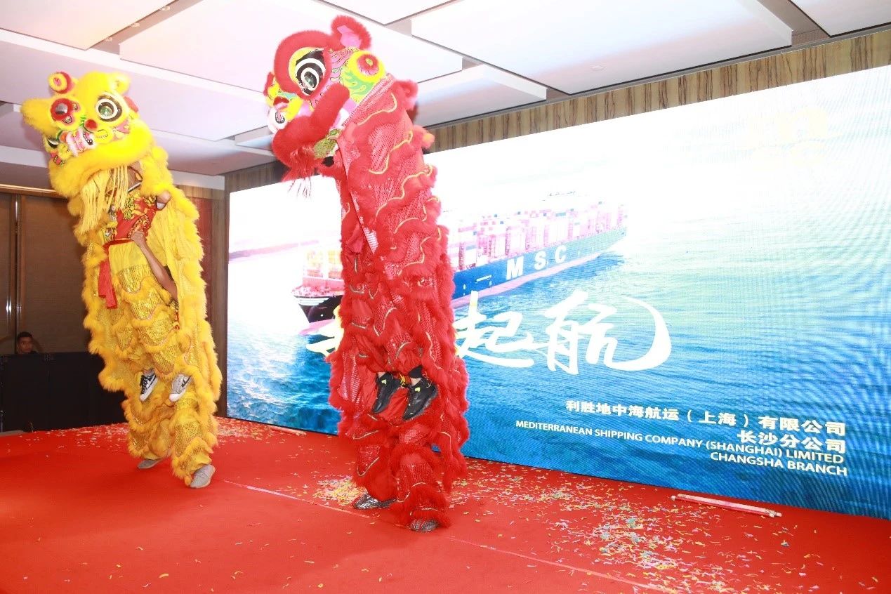 MSC大中华区董事总经理朱竞先生,MSC北中国区航线与销售部总经理聂美思女士为祥狮点睛。祥狮献瑞,祝贺MSC长沙分公司开业大吉,财源广进。
