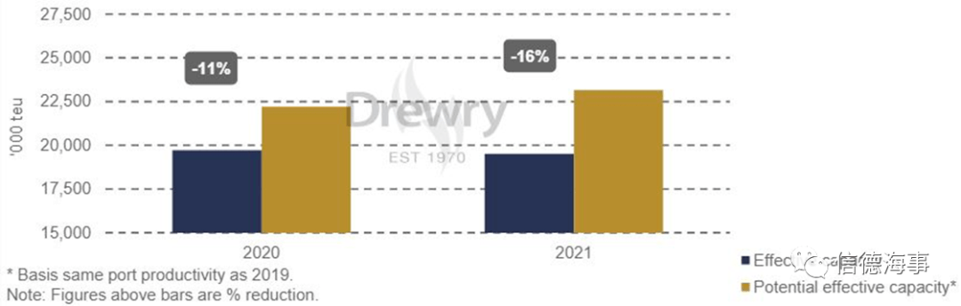 德鲁里公司估计,由于港口生产力下降的直接后果,今年市场上可用的运力将损失16%,而去年已经减少了11%。