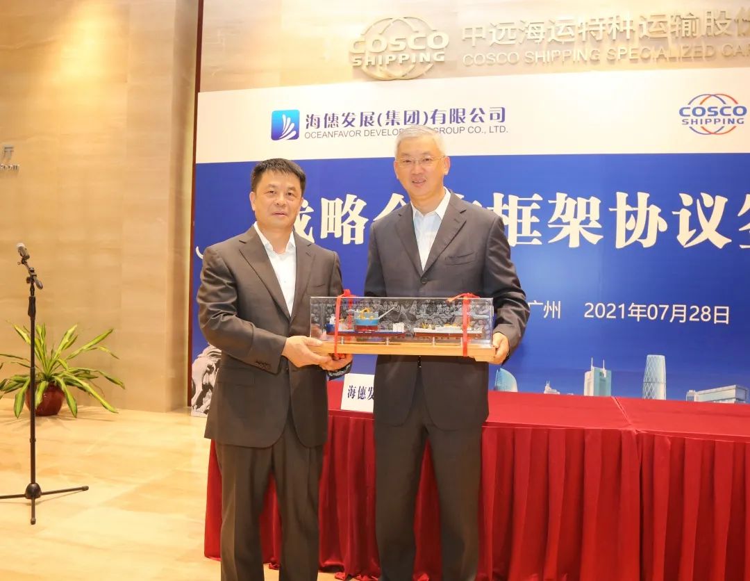7月28日 ,中远海运特运与海僡发展(集团)有限公司在广州远洋大厦举行战略合作签约仪式。