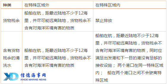 MARPOL公约附则V中有关船舶货物残余的排放规定
