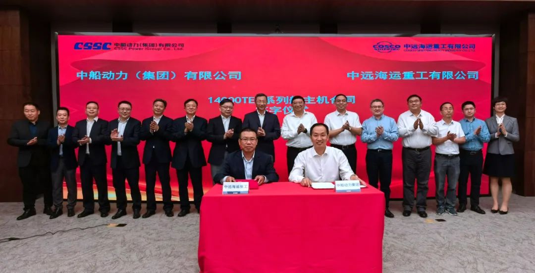 10月13日,中远海运重工有限公司旗下扬州中远海运重工有限公司、南京中远海运船舶设备配件有限公司与中国船舶集团旗下中船动力(集团)有限公司举行了集装箱系列船主机合同、低速机排气阀杆合作框架协议签约仪式。中远海运重工董事长、总经理梁岩峰,副总经理陈弓,中船动力集团党委书记、董事长李琤,党委副书记周继胜等出席签约仪式。
