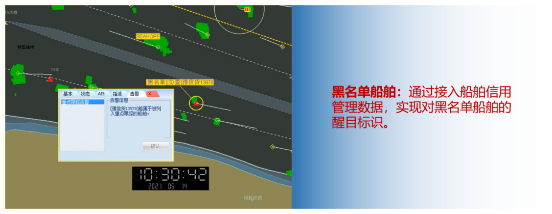 针对现场无法快速有效识别黑名单船舶、重点跟踪船舶和协查船舶等问题,国产VTS系统2.0版本通过打通数据库,在数据共享融合的基础上,通过“贴标”式管理对到港船舶实行有的放矢性的精准监管,让失信船舶无所遁形。