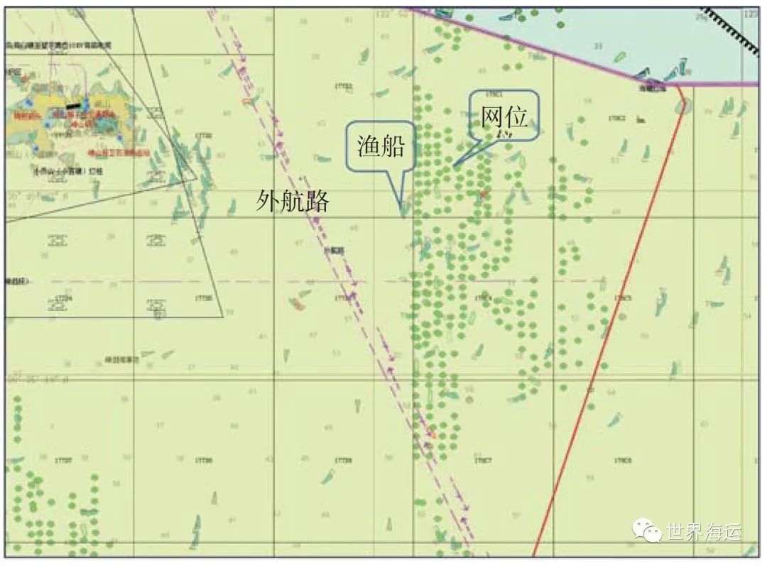 网位仪一般使用于帆张网、流刺网、蟹笼和定置张网等网具,如流刺网布设呈“弓”字形长达20~30 n mile,每1 km左右放置一个网位仪。具体位置随渔船作业方式和鱼群分布而变化,多数布设在机动渔船底拖网禁渔区线 ( 简称禁渔线 ) 外,少量在禁渔线内甚至航道、航路等通航水域。据浙江沿海某市调查统计,该市26.5%的国内渔船使用网位仪,平均单船使用12.8个,90%在禁渔线外作业;在使用网位仪的不同作业方式中,帆张网、流刺网渔船数量最多,使用网位仪数量也最多,定置张网单船使用网位仪数量最大;禁渔线内定置张网渔船布设网位仪数量最多,对商船航行安全威胁最大。