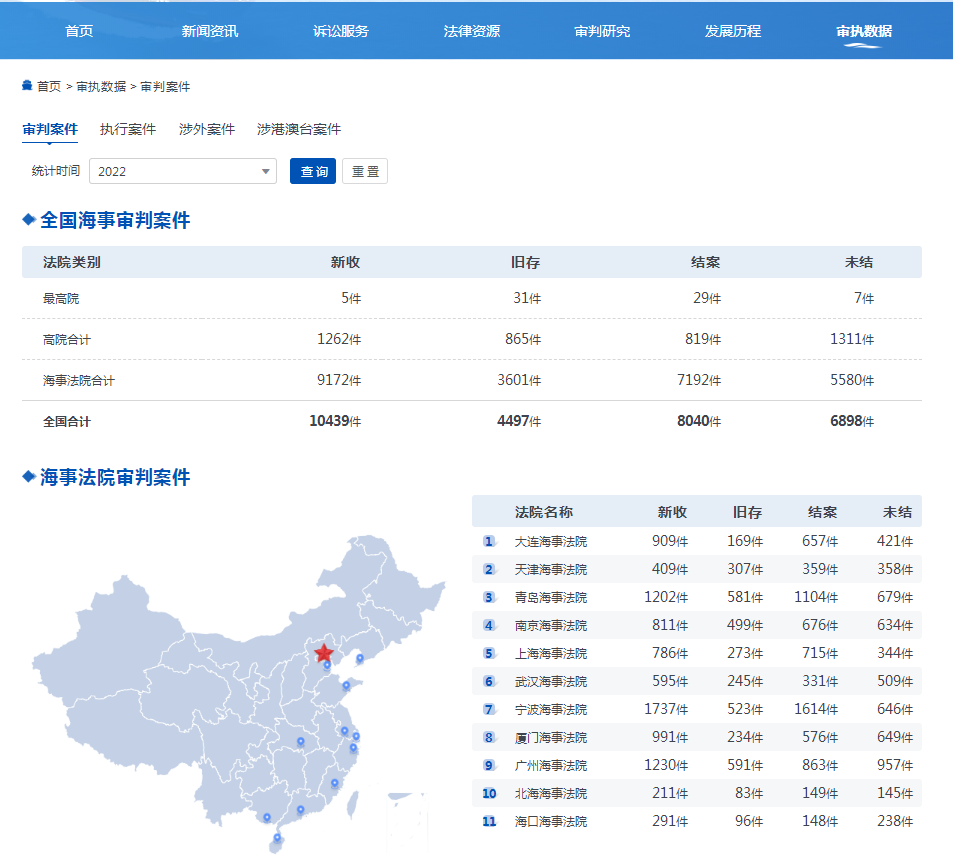 中国是世界海事审判第一大国。为进一步加强我国海事审判信息化建设工作,提升诉讼服务水平,彰显海事司法透明度,中国海事审判网于日前上线。该网站由最高人民法院主导,广东省高级人民法院支持、广州海事法院承建,覆盖全国11家海事法院及其上诉审高级人民法院和最高人民法院的海事审判业务。