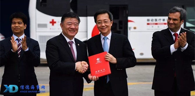 5月8日是第71个世界红十字日,中国红十字会援助叙利亚人道救援设备启运仪式在上海外高桥码头举行。此次援助属于中国红十字基金会“丝路博爱基金”项目,由中远海运集团提供运输支持,主要为当地民众提供基本诊疗、手术、体检、医疗转运等综合性卫生服务大型多功能的移动医疗单元,由两辆医疗大巴、两辆救护车组成,具备移动医疗和远程医疗功能。该项目也是中远海运慈善基金会和中国红十字会长期开展人道主义合作项目。