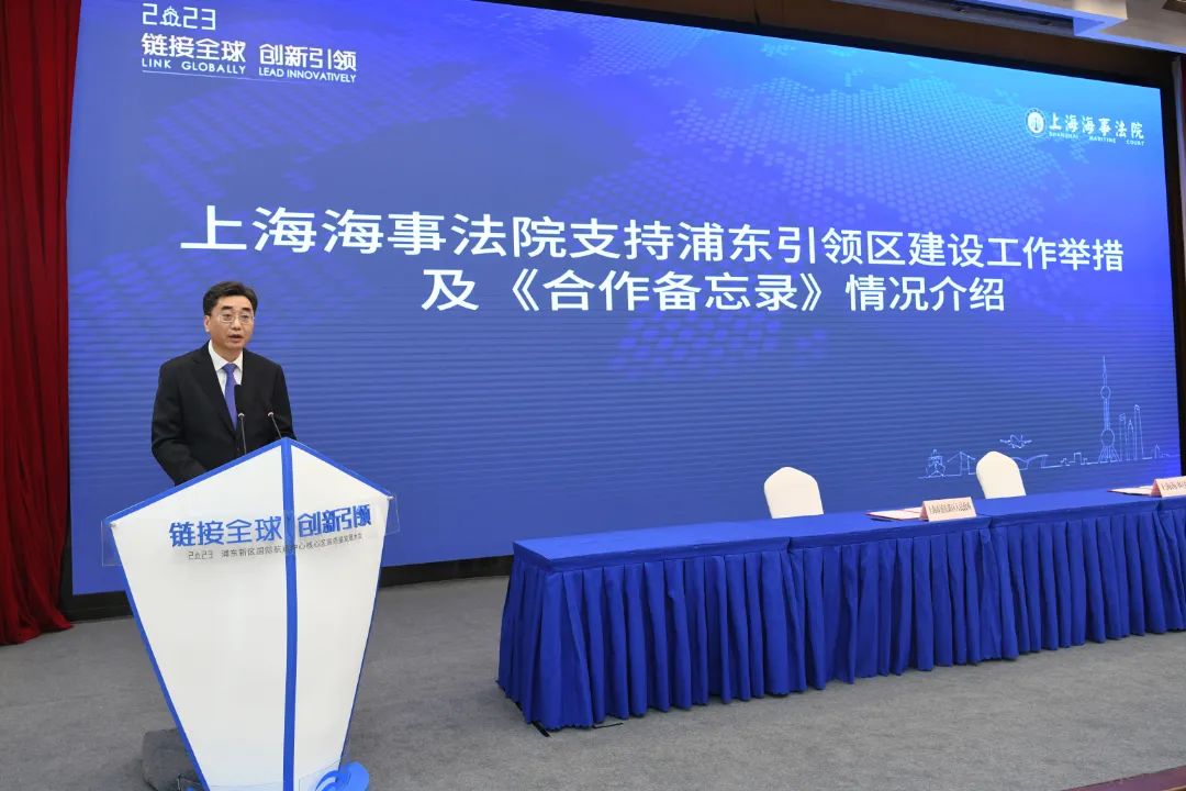 为全面落实中共中央、国务院《关于支持浦东新区高水平改革开放 打造社会主义现代化建设引领区的意见》和上海市第十二次党代会精神,推动浦东引领区高质量发展,在2月14日召开的“2023浦东新区国际航运中心核心区高质量发展大会”上,上海海事法院与上海市浦东新区人民政府签订《合作备忘录》,共同推进浦东新区国际航运中心核心区建设。