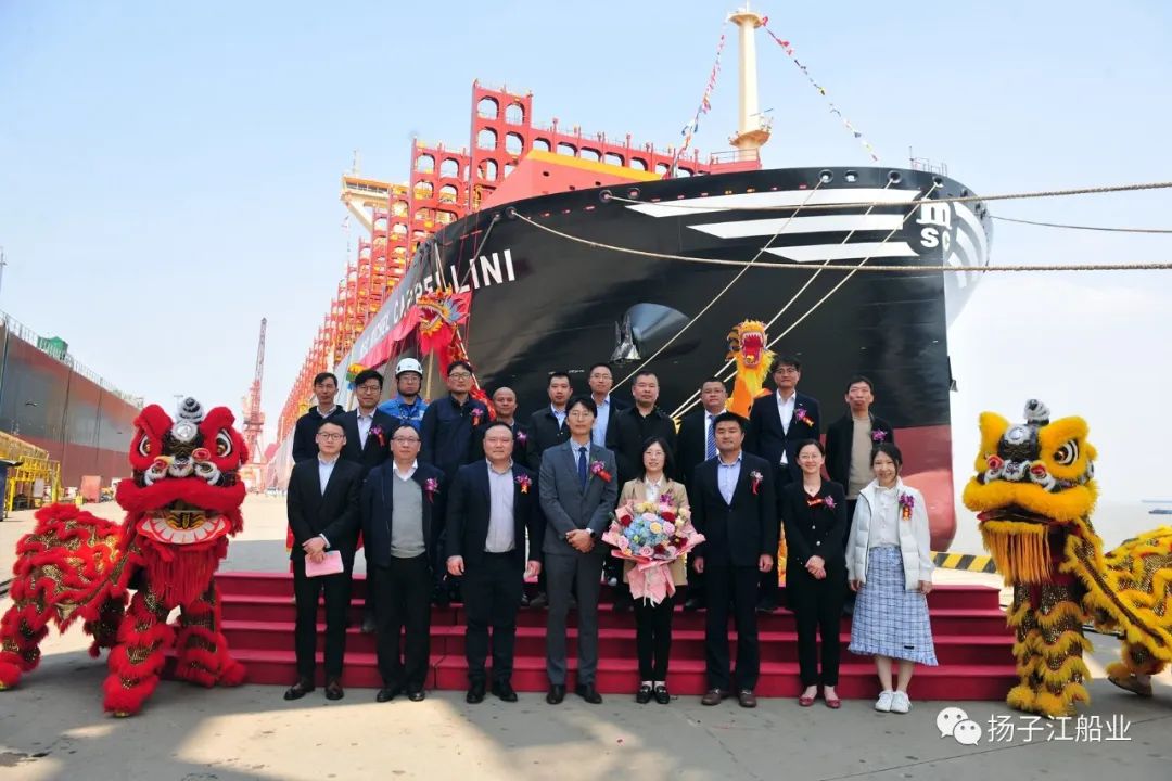 自今年3月以来,扬子鑫福实现连续每月命名交付一艘24000TEU集装箱船的既定目标。“MSC MICHEL CAPPELLINI”轮总长399.9米,型宽61.3米,型深33.5米,载重量近240000吨,箱位数达24346TEU。该船配备深度优化的绑扎系统,运载能力世界第一,配备了空气润滑系统、轴带发电机和上建降风阻优化等节能措施,具备DNV消防附加符号FCS,是新一代高效、节能、环保超大型集装箱船。