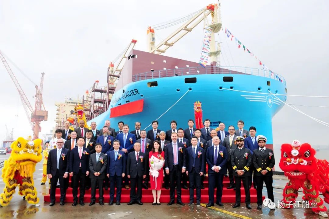 5月31日上午,我集团新扬子造船向船东日本LEPTA交付一艘3500TEU集装箱船“MAERSK GLACIER”轮。
