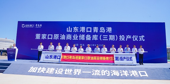 8月23日,山东港口青岛港董家口港区原油商业储备库(三期)投产仪式举行,至此,董家口港区原油商业储备库一期、二期、三期工程共计520万立方米原油储罐及配套设施全部建成投产,全国沿海港口单体容量最大的油品库区全部由工程建设转入生产运营阶段,项目投产后董家口港区己建成投产的原油库区罐容设计年存储能力突破1106万立方米,服务山东区域和内陆腹地经济发展能力进一步提升。