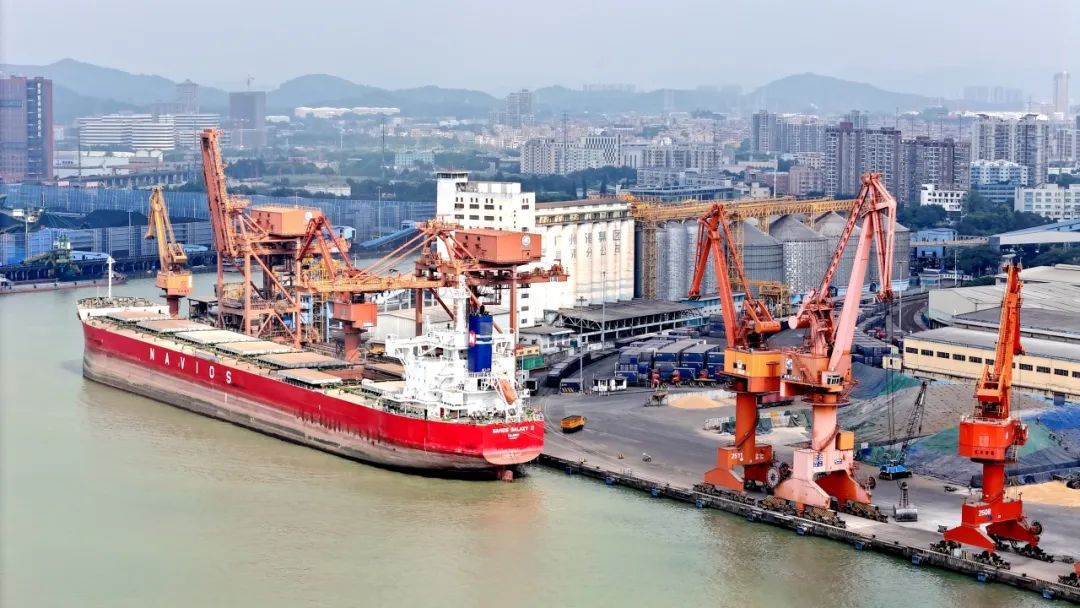 这是海关总署发布公告,允许符合相关检疫要求的巴西橙纤维颗粒进口以来,全国首船大宗进口的巴西橙纤维颗粒,进一步拓宽了我国从“一带一路”国家进口外贸粮食的数量和种类,为保障区域粮食供应、促进临港经济发展提供有力支撑。