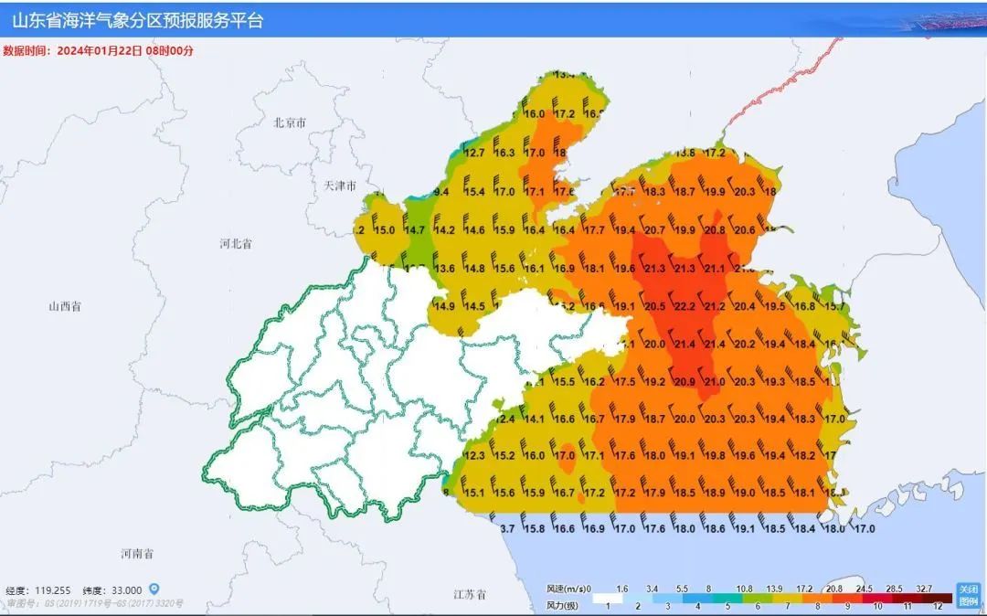 山东省海上搜救中心于1月21日07时30分发布海上风险黄色预警信息: