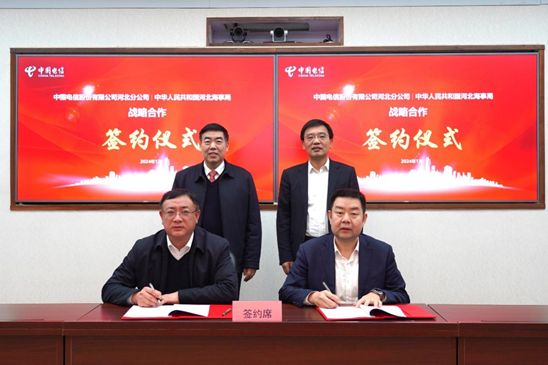 为全面贯彻习近平总书记视察河北重要讲话精神,深入落实《交通强国建设纲要》等部署要求,推动构建新型智慧海事,全面提升水上交通治理体系和治理能力现代化水平。1月23日,河北海事局与河北电信签订战略合作协议,河北海事局党组书记、局长张铁军,河北电信党委书记、总经理李新颖,河北海事局党组成员、副局长李义良,河北电信党委委员、副总经理丁涛出席本次活动。