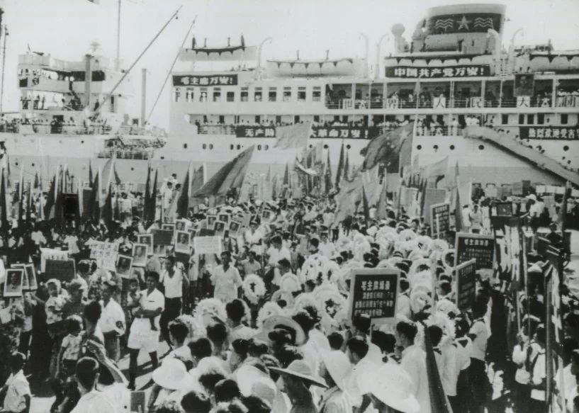 ▲“光华”轮运送坦赞铁路工程技术人员出国
