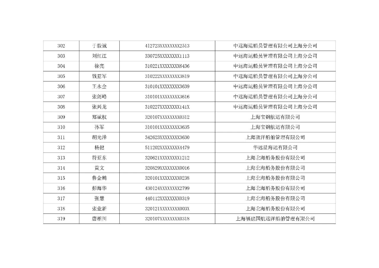 诚信船长公示名单: