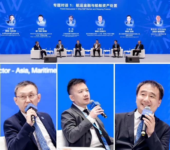 其中,“航运金融与船舶资产处置”专题对话环节由宝圣海运香港公司总经理王建军主持,Maritime Strategies International(MSI)亚洲区总裁Aw Yong Woon(欧阳恩)、工银金租海洋金融部主管齐凯、克拉克森航运经纪(上海)有限公司执行董事王澄宇、浙江拍船网航运交易股份有限公司首席分析师王琪俊以及Bulk Marine首席执行官Sanjiv Bhargava(桑吉夫.巴尔加瓦)船长一起对当前航运市场进行了分析与展望,对新造船与买卖船战略、二手船舶买卖市场发展重点进行了讨论,对新兴的绿色航运金融进行了介绍。