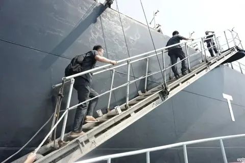 海上风浪正兴,轮渡摇晃剧烈,法官登船并非易事,但考虑到船员们抵触情绪强烈,执行法官果断回应:“行!我上去和你们谈!”