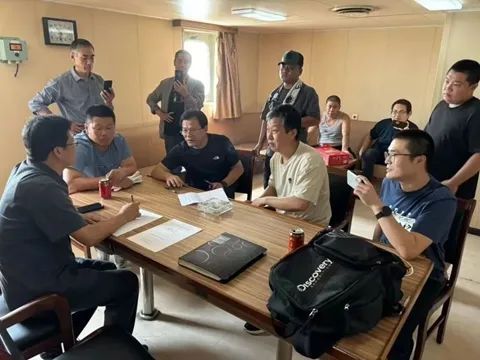 船员主动汇报船舶情况、盘点库存,两艘轮船的交接工作圆满完成。