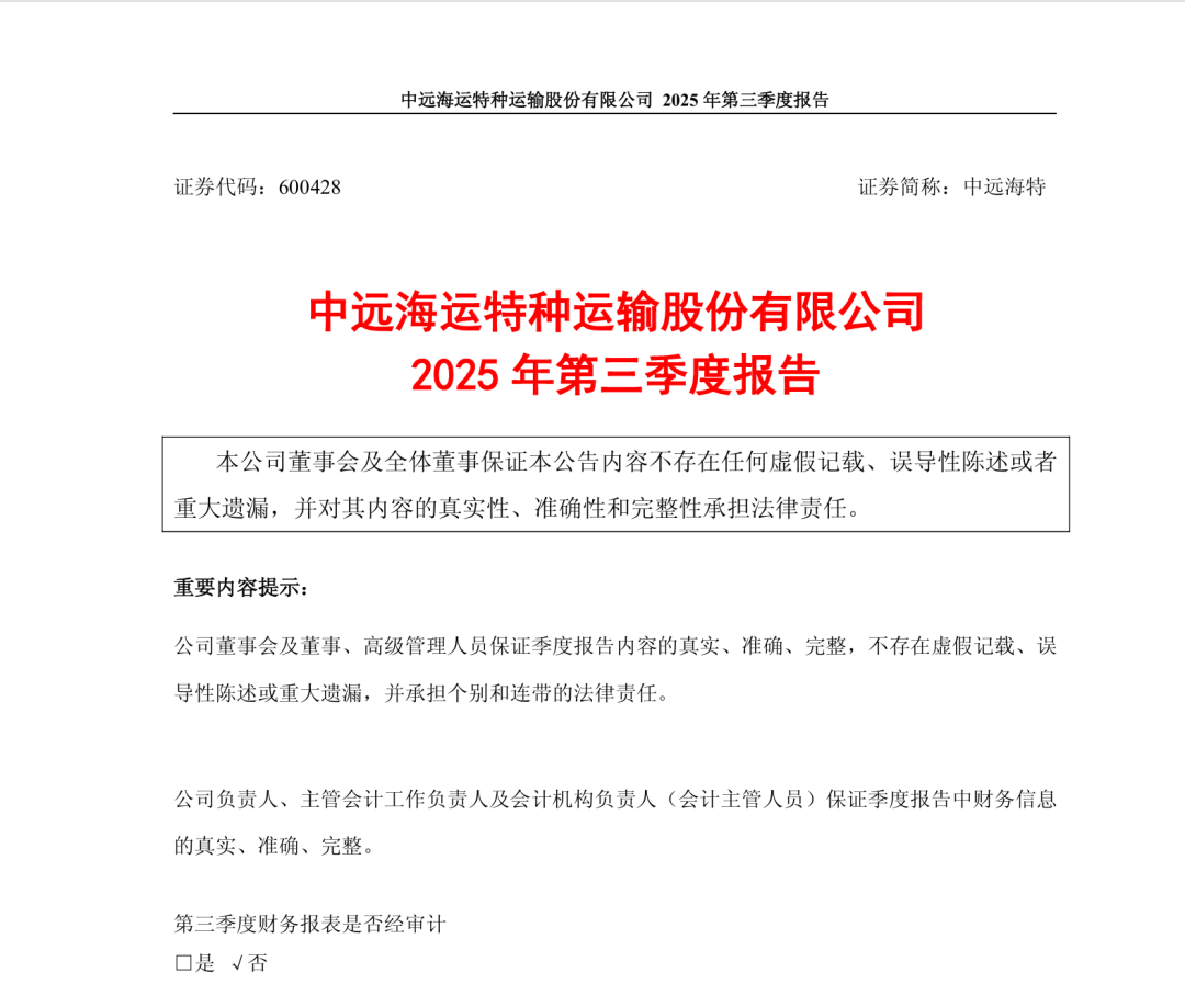 称“中远海特”,股票代码:600428)发布2025年第三季度报告。在全球航运市场复杂多变的背景下,公司实现了营收与利润的稳健增长,进一步巩固了其在全球特种运输领域的领先地位。
