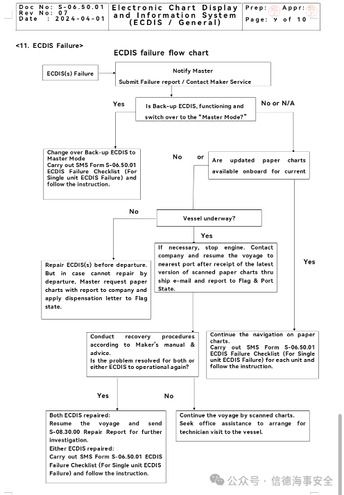 9. 检查了电子海图发生故障后的应急处理程序及张贴;