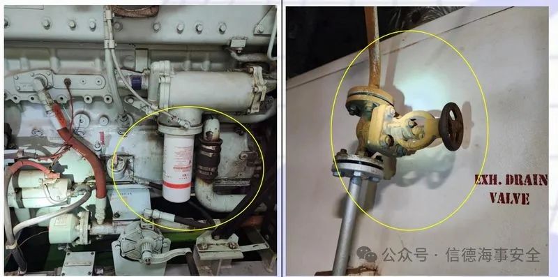 26-Emergency Generator Exhaust Maintenance: Unclear instructions and maintenance neglect on the exhaust valve can lead to operational inefficiencies and potential safety hazards.Post instructions near the emergency diesel generator exhaust pipe drain-in valve; paint the rusty valve and keep the generator clean.重要设备建议张贴操作说明并且做好相应保养