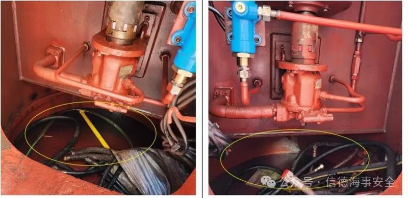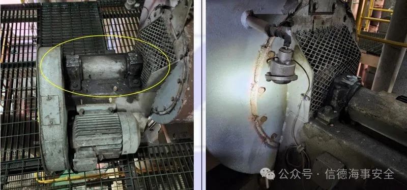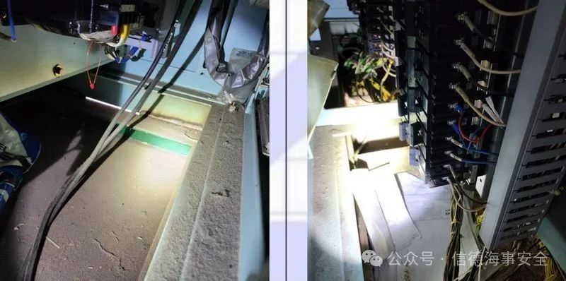 3.Vent Fans Electric Cables: Damaged electric cables and unsecured motor grounding on engine room vent fans could cause electrical shorts, posing fire hazards and system failures. 线管位置不密封