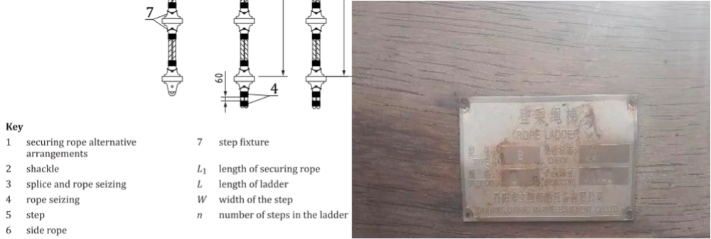 ●外接的辅助边索与应通过卸扣连接引水梯(辅助边索是引水梯边索一部分除外)且长度应大于3米。其他相关部件尺寸详见标准。