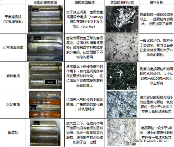 有时我们如何去区别和判定不同类型的磨损,可以根据齿轮齿面的情况以及铁谱来做深层次分析,如下表1所示。