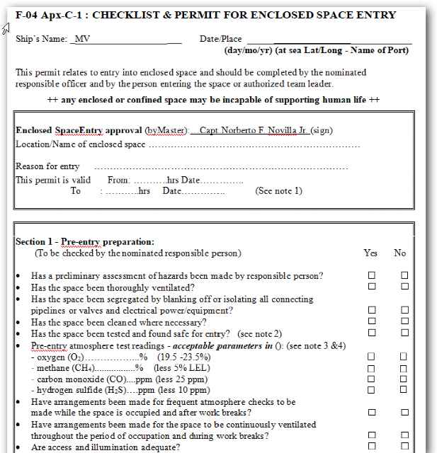 关于流程,SLOAS公约下制定了一个ISM规则,ISM规则强制要求了SMS文件。SMS详细规定关于进入密闭舱室的完整程序。从风险评估、PERMIT TO WORK、进入流程、救助准备、张贴告示、专人联系等等,每一步都要一丝不苟。