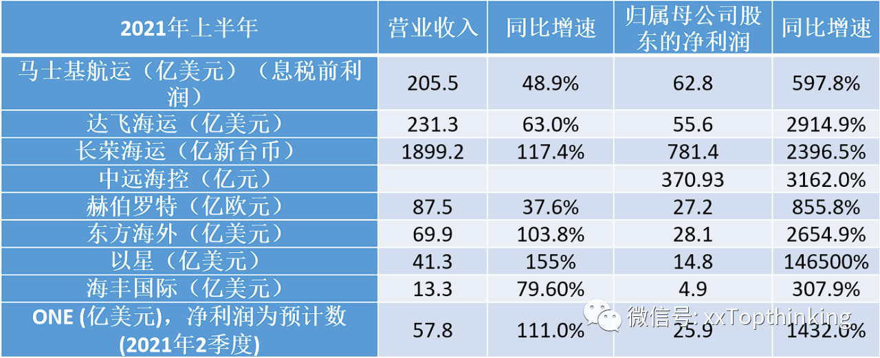 1.国际集装箱航运企业净利润实现高倍数增长,部分企业效益达历史最高水平