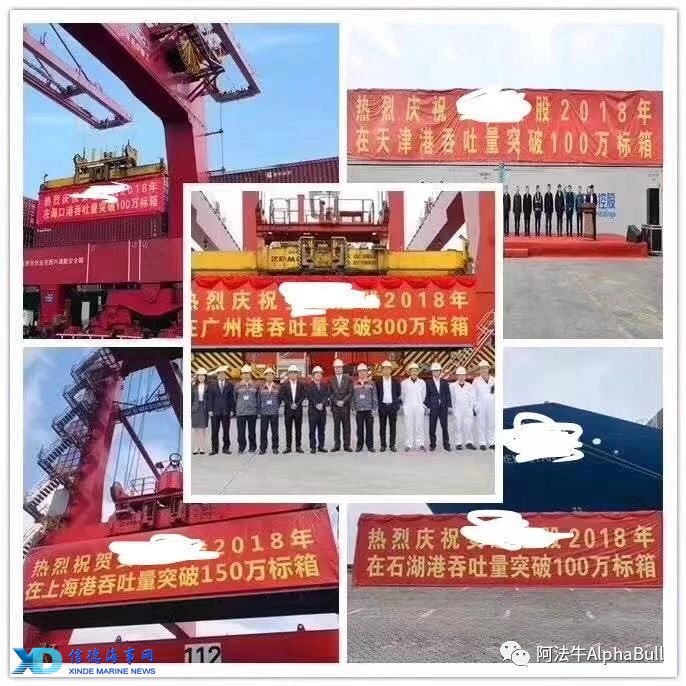 后来一查,不但很多媒体都在用这样的模式报道:某航运公司在某某港“吞吐量”突破XXX万标箱,而且航运公司自己也挂出大幅牌子在庆祝。当然,大多是内贸集装箱航运公司,像中远海运这样的大公司不会犯这种低级错误。