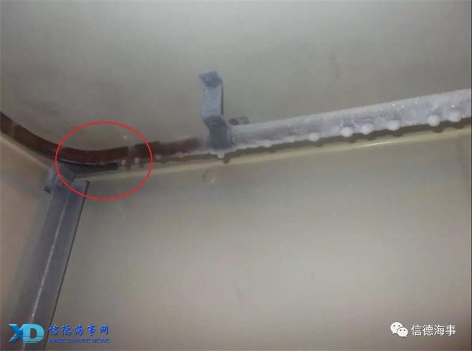 4. 用干燥气体(氮气或者二氧化碳)吹除水分. 回收系统内所有冷剂,用干燥气体吹扫系统,最后抽真空,重新加如冷剂.水分大多聚集在液气分离器和冷凝器内,鉴于船上实际条件,此操作需岸上技术人员设备的支持.