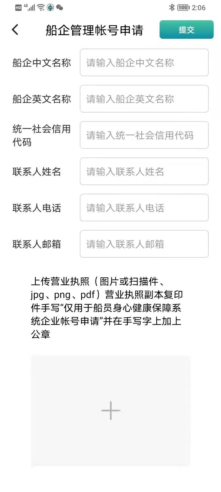 3、点击“船企管理账户开户”,填写船企信息并按照要求上传营业执照,提交后台审核