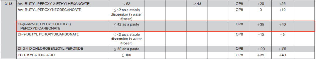 →2.5.3.2.4中列出了允许运输的有机过氧化物,IBC520列出了允许以IBCs运输的有机过氧化物,T23列出了允许以可移动罐柜运输的有机过氧化物。