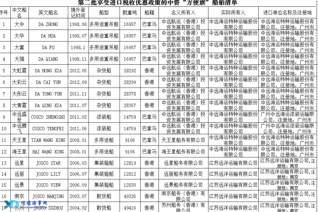 第二批享受进口税收优惠政策的中资“方便旗”船舶清单(部分)