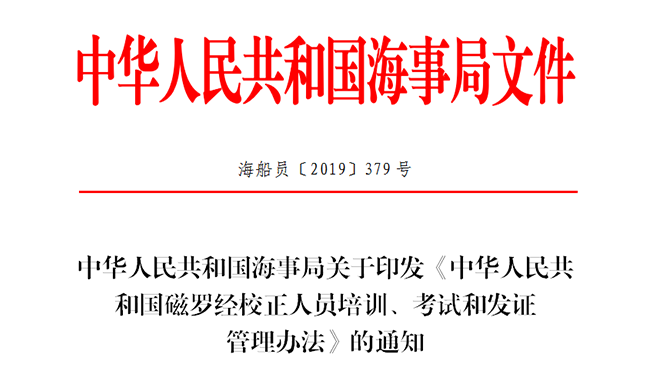 为深化“放管服”改革,做好磁罗经校正人员培训、考试和发证管理工作,现将《中华人民共和国磁罗经校正人员培训、考试和发证管理办法》印发给你们,请遵照执行。