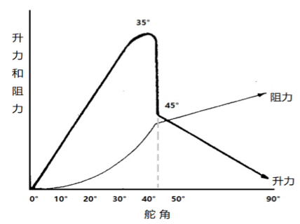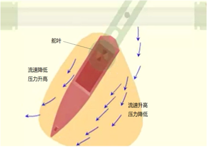 伴随舵角的增大,作用在舵叶上的升力和阻力逐渐变大,当舵角增加到某一数值时,舵叶背流面就会出现涡流,使舵叶迎流面与背流面的压力差减小,升力骤然下降,阻力继续升高,出现舵的失速现象。出现失速时的舵角,称为失速舵角。