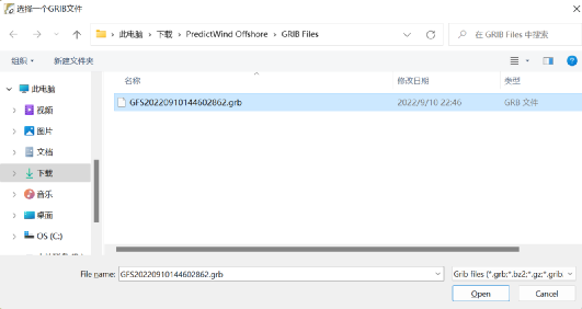 至此我们获取最近三天的气象信息保存到本地,然后我们再通过OPENCPN的工具栏打开该文件
