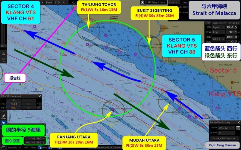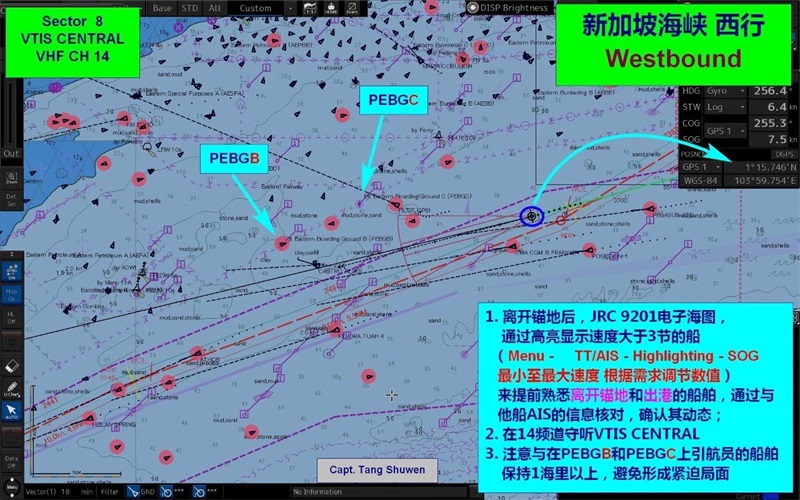本文以大型散货船西行到 AEBA 锚地加油,继而西行走新加坡、马六甲海峡为路线进行分析。